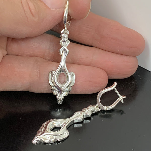 Sterling silver ear pendants inspired by the Art Nouveau era of jewellery and decorative design.